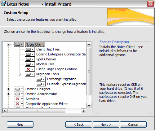 Migration’ and ‘Outlook Express Migration’ enabled in the Notes